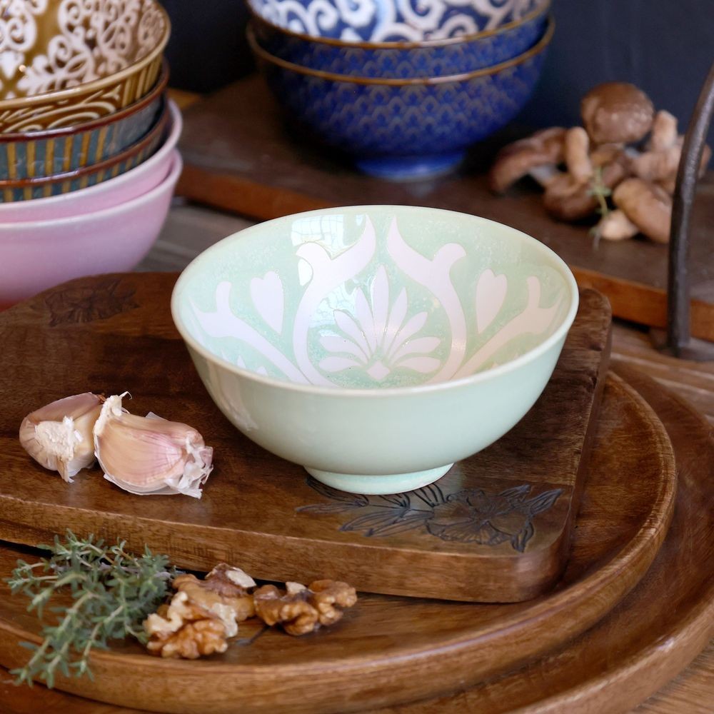 Její jemná zelená barva a kvetoucí vzory dodávají každému stolu nádechy a romantiky, čímž ji činí skvělým doplňkem pro jakoukoli příležitost. Tato miska není jen praktickým kuchyňským náčiním, ale také stylovým kouskem, který osvěží vaše interiéry.