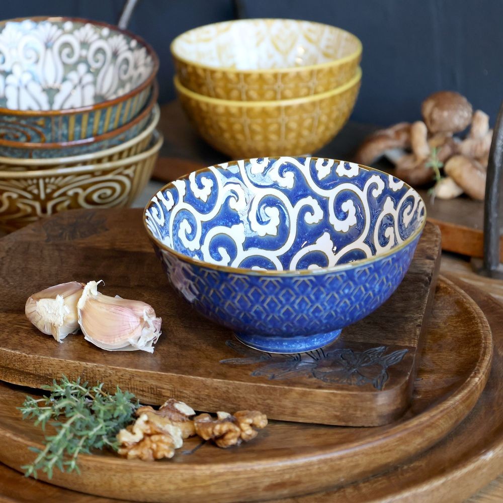 Objevte kouzlo vintage stylu s modrou porcelánovou miskou Arés, která se pyšní elegantním designem s květy uvnitř. S průměrem 12 cm a výškou 5,5 cm je ideální pro podávání různých pokrmů, od salátů po dezerty.
