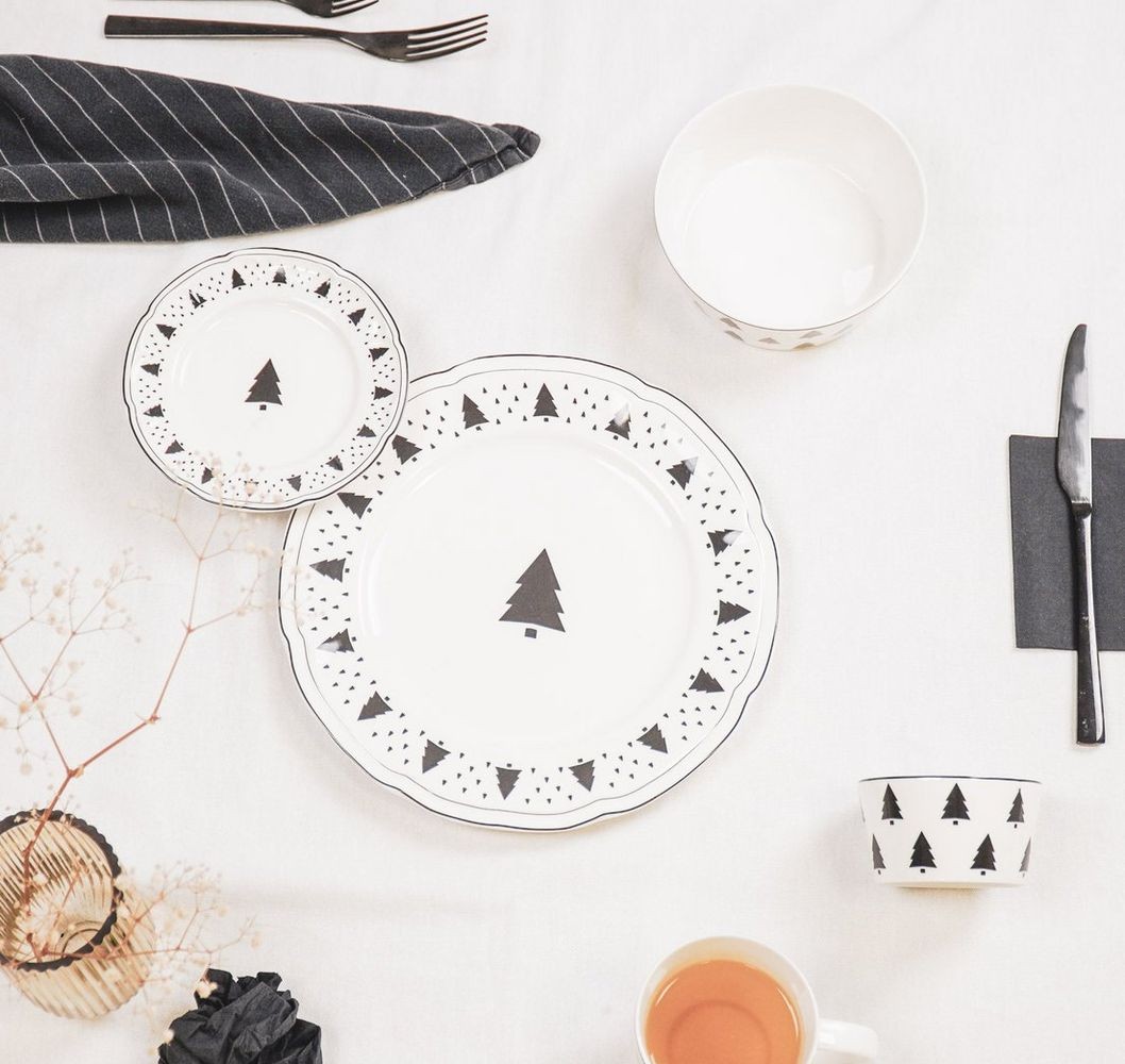 Objevte kouzlo vánoční atmosféry s krásným bílo-černým malým talířkem se stromky X-Mas Tree. Tento elegantní talíř se stane středobodem vašeho svátečního stolu.
