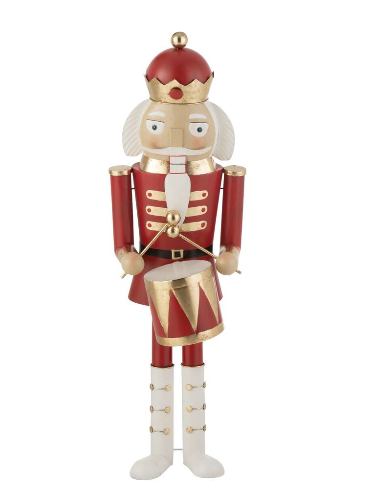 Objevte kouzlo Vánoc s úchvatnou bílou-červenou kovovou sochou Louskáčka s bubínkem! S impozantními rozměry 33*30*106 cm tato dekorace nejenže skvěle zapadá do jakéhokoli svátečního aranžmá, ale také se stává středem pozornosti ve vašem domově či na vánočních trzích.