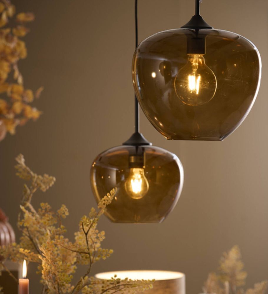 Objevte kouzlo elegance s hnědým skleněným závěsným světlem Mayson. Tato nádherná lampa o průměru 23 cm kombinuje moderní design s klasickými prvky, který vytváří výrazný prvek ve vašem interiéru.