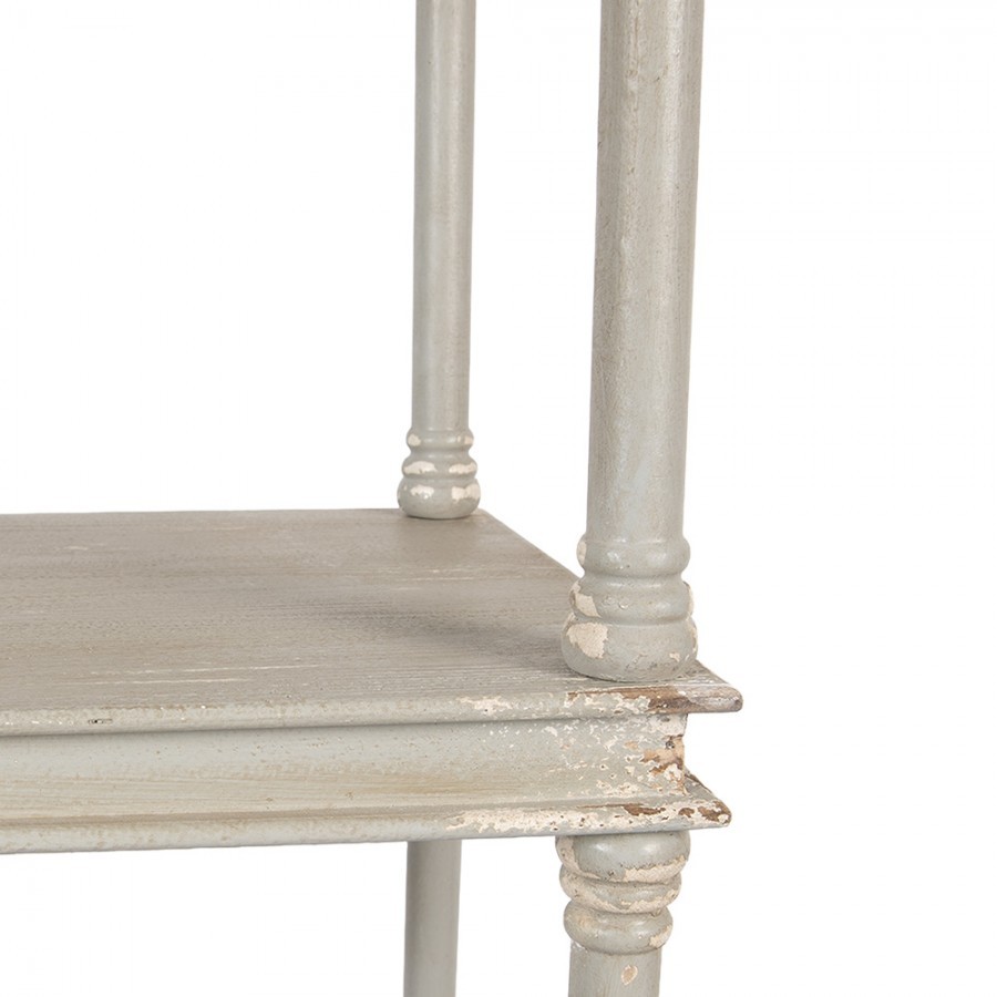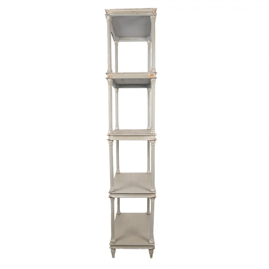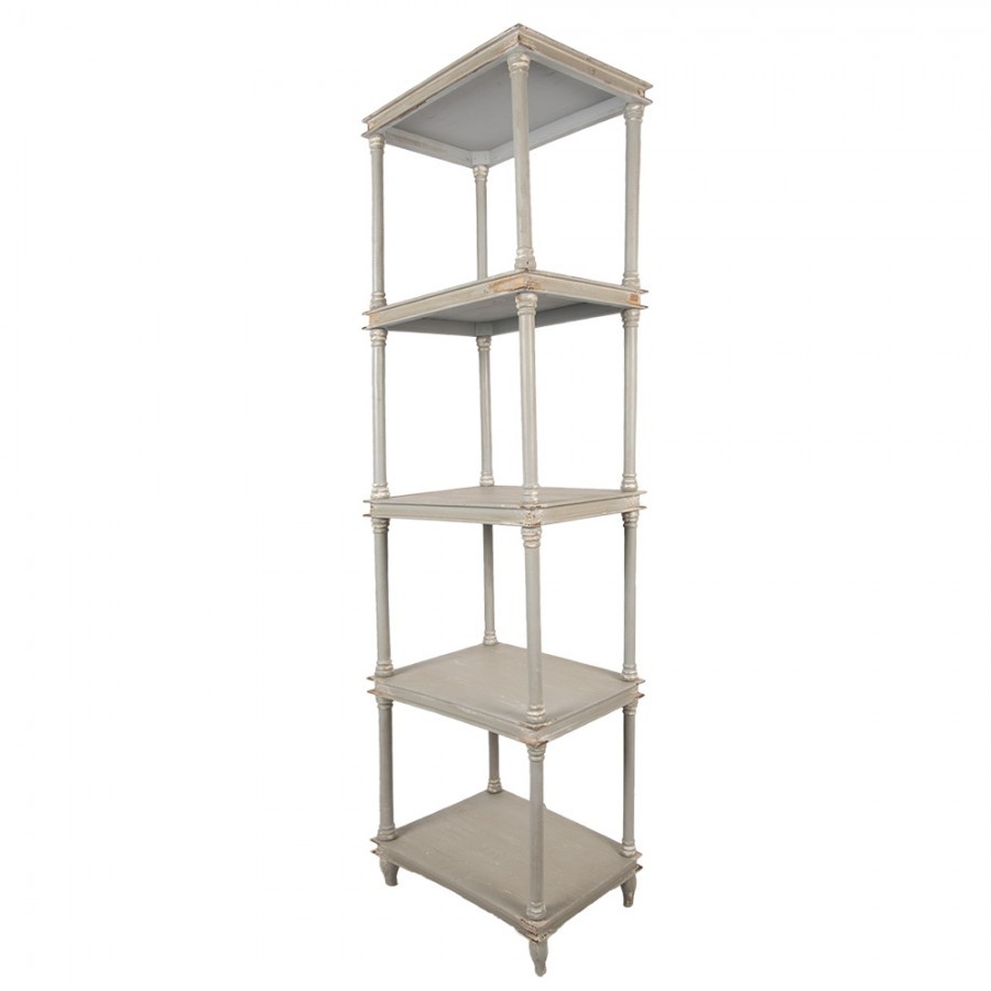 Jeho rozměry 55 * 40 * 210 cm zaručují dostatek prostoru pro knihy, dekorace či osobní poklady, zatímco šedá antik povrchová úprava dodává regálu jedinečný šarm a charakter.