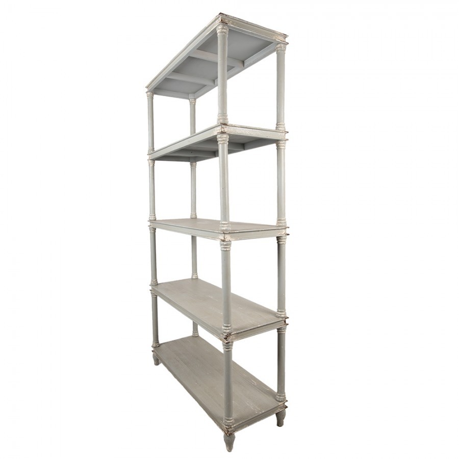 Jeho rozměry 110 * 40 * 210 cm zaručují dostatek prostoru pro knihy, dekorace či osobní poklady, zatímco šedá antik povrchová úprava dodává regálu jedinečný šarm a charakter.