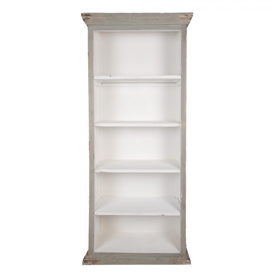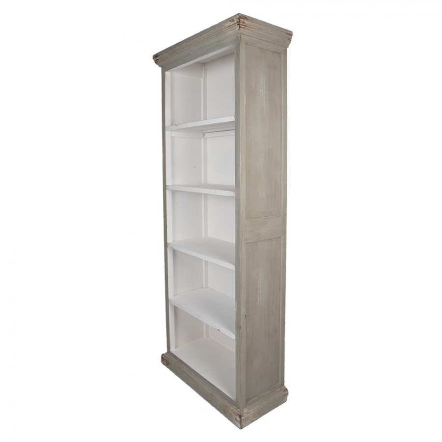 S rozměry 80*36*195 cm je tato knihovna ideální volbou pro milovníky knih a designu. Její pečlivě vyřezávané detaily a jemný antik povrch dodávají prostoru osobitost, zatímco bílá a šedá barva harmonicky zapadne do nostalgického interiéru.