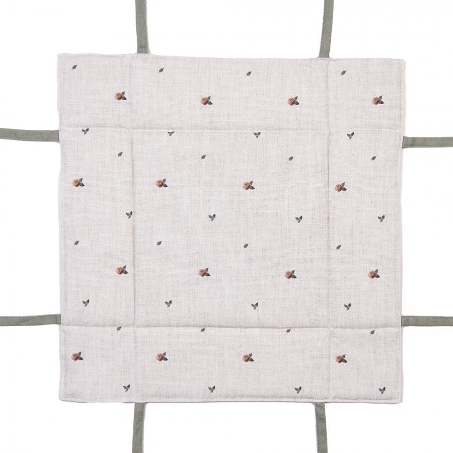 Dno košíku zdobí půvabná ilustrace zajíčka usazeného v květinovém věnci, která na vás vykoukne, jakmile pečivo ubude. Boky jsou tvořeny látkou s jemným potiskem, který imituje strukturu lnu. Celý košík drží svůj tvar díky čtyřem ozdobným zeleným stuhám v rozích. Ty nejenže skvěle vypadají, ale umožňují košík po použití rozvázat a skladovat naplocho v šuplíku.