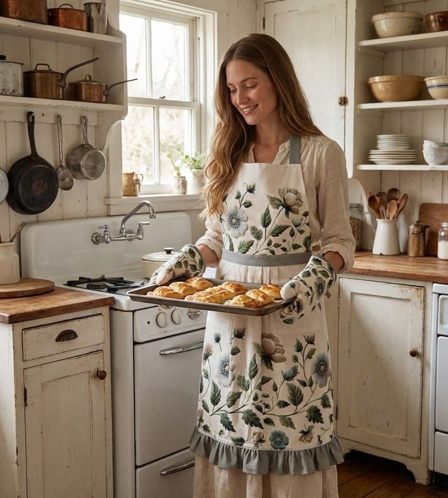 Zapomeňte na neforemné ochranné oděvy. Béžová bavlněná zástěra z kolekce Gently Blooming je důkazem, že i při vaření můžete vypadat stylově a žensky. Tato zástěra není jen praktickým pomocníkem proti skvrnám, ale skutečným módním doplňkem pro každou hostitelku.