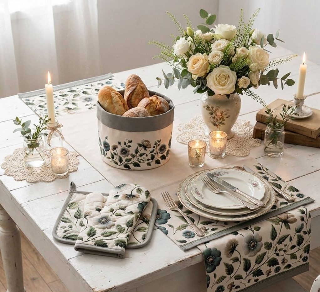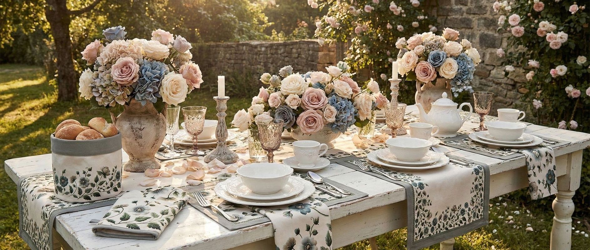 Tip na aranžmá: Pro opravdu slavnostní vzhled položte doprostřed stolu běhoun (štolu) ze stejné kolekce a po stranách rozmístěte tato prostírání. Kombinace textilií Gently Blooming vytvoří úchvatný vrstvený efekt, který vaši hosté budou obdivovat.