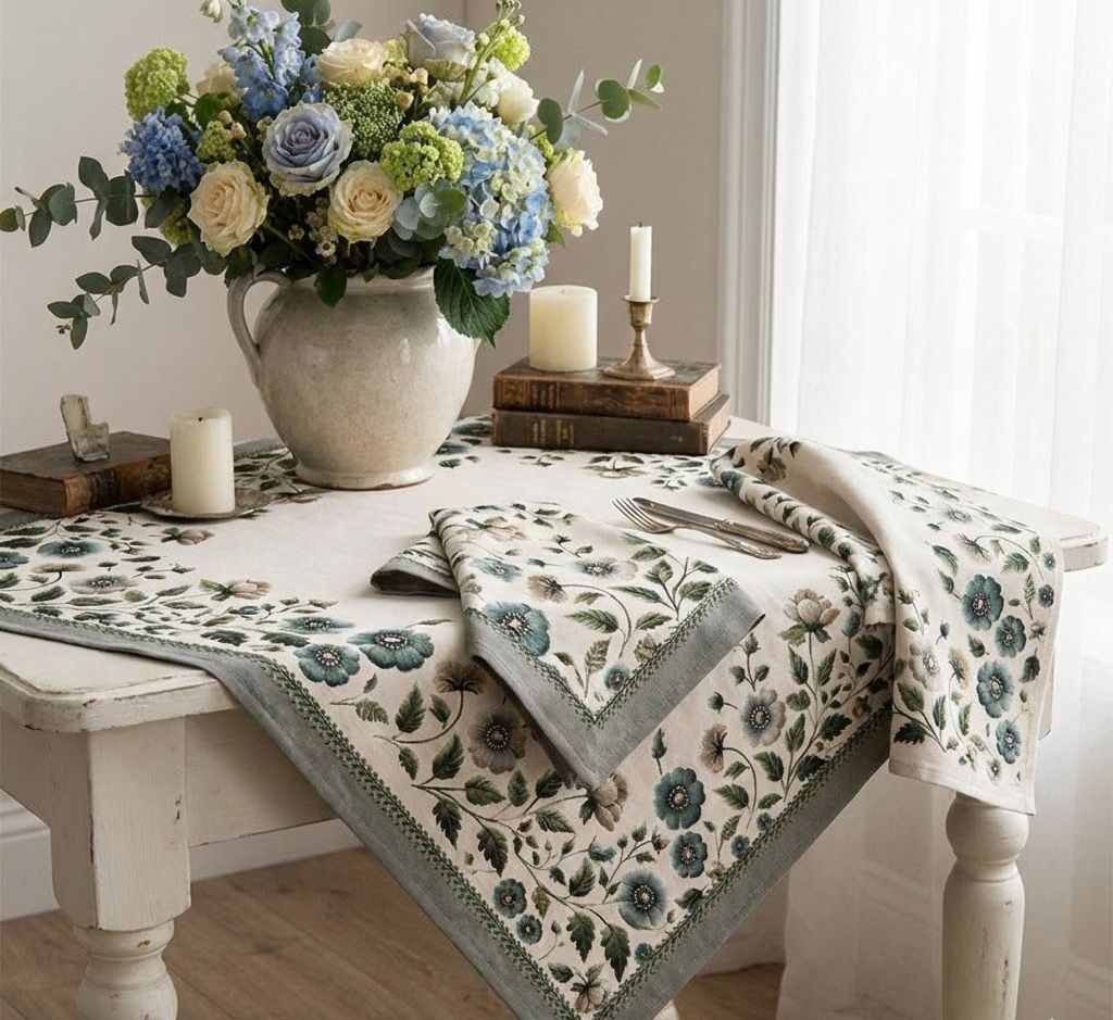 Hledáte způsob, jak dodat jídelně šarm francouzského venkova, aniž byste museli zakrývat celý stůl těžkým textilem? Čtvercový bavlněný ubrus z kolekce Gently Blooming je elegantním řešením, které v sobě snoubí lehkost a romantický vintage styl.