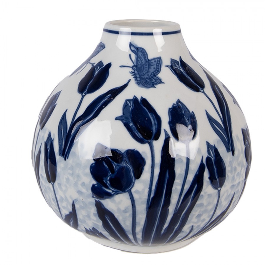 Dodejte svému interiéru svěží a romantický prvek s touto nádhernou kulatou vázou z oblíbené kolekce Vintage Unique. Její baňatý tvar poskytuje perfektní stabilitu a dává vyniknout překrásnému motivu tmavě modrých tulipánů, který na zářivě bílém porcelánu tvoří poutavý a elegantní kontrast.