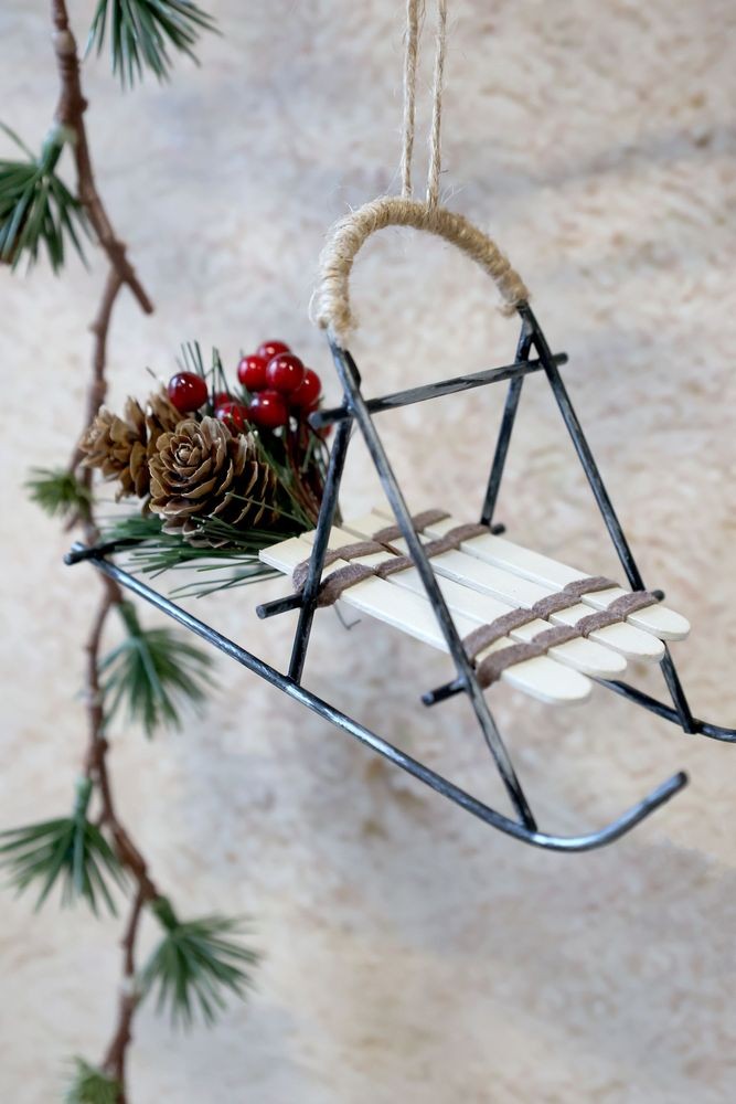 Přineste si kouzlo zimních radovánek domů s vánoční ozdobou ve tvaru starých sání. Tato unikátní ozdoba zachycuje prvky zimních sportů a nostalgie s dávnými časy.