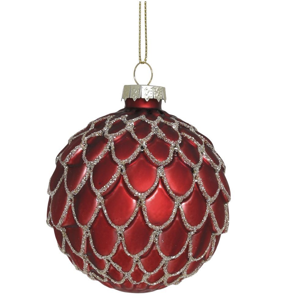 Připravte se na kouzlo Vánoc s červenou ručně malovanou skleněnou ozdobou koule o průměru 8 cm. Tato nádherná ozdoba, zdobená třpytkami, dodá vašemu vánočnímu stromku jedinečný a stylový vzhled.