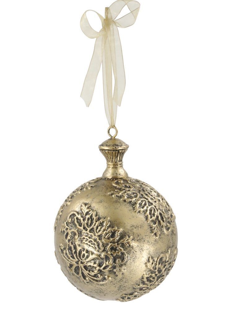 Objevte kouzlo vánočních svátků s mosaznou antik vánoční ozdobou v podobě koule, která měří Ø 10 * 15 cm. Tato jedinečná ozdoba, vyrobená z kvalitního polyresinu, v sobě snoubí tradiční design a moderní materiály, což dodává nejen odolnost, ale i eleganci.