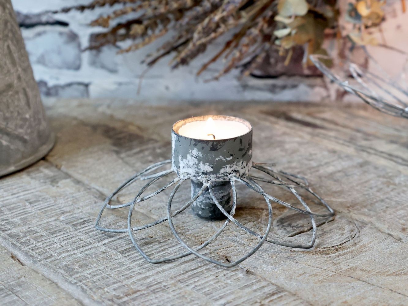 Svícen květina Flia, s jeho zinkovým antik povrchem, přináší do vašeho domova nádech vintage stylu a originalitu. Jeho květinový design v kombinaci s univerzálním materiálem činí tento kousek nejen praktickým, ale také esteticky přitažlivým.