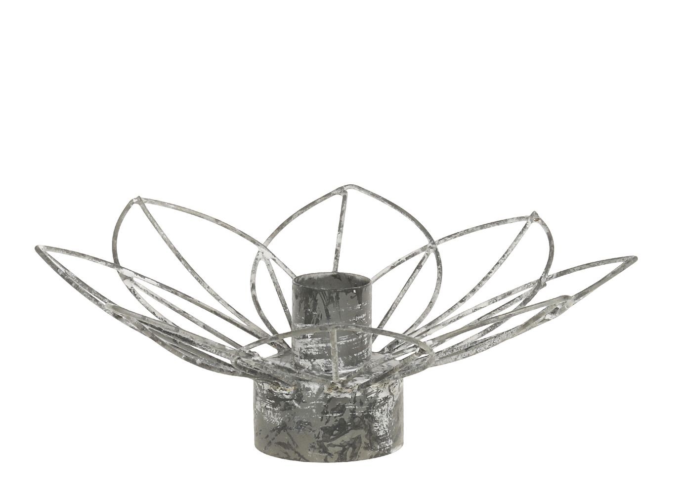 Objevte kouzlo elegance s naším zinkovým antik kovovým svícnem na úzkou svíčku květina Flia. Tento nádherný svícen, měřící Ø 15*7cm, je nejen stylovým doplňkem vašeho interiéru, ale také praktickým pomocníkem pro romantické večery a útulné chvíle.