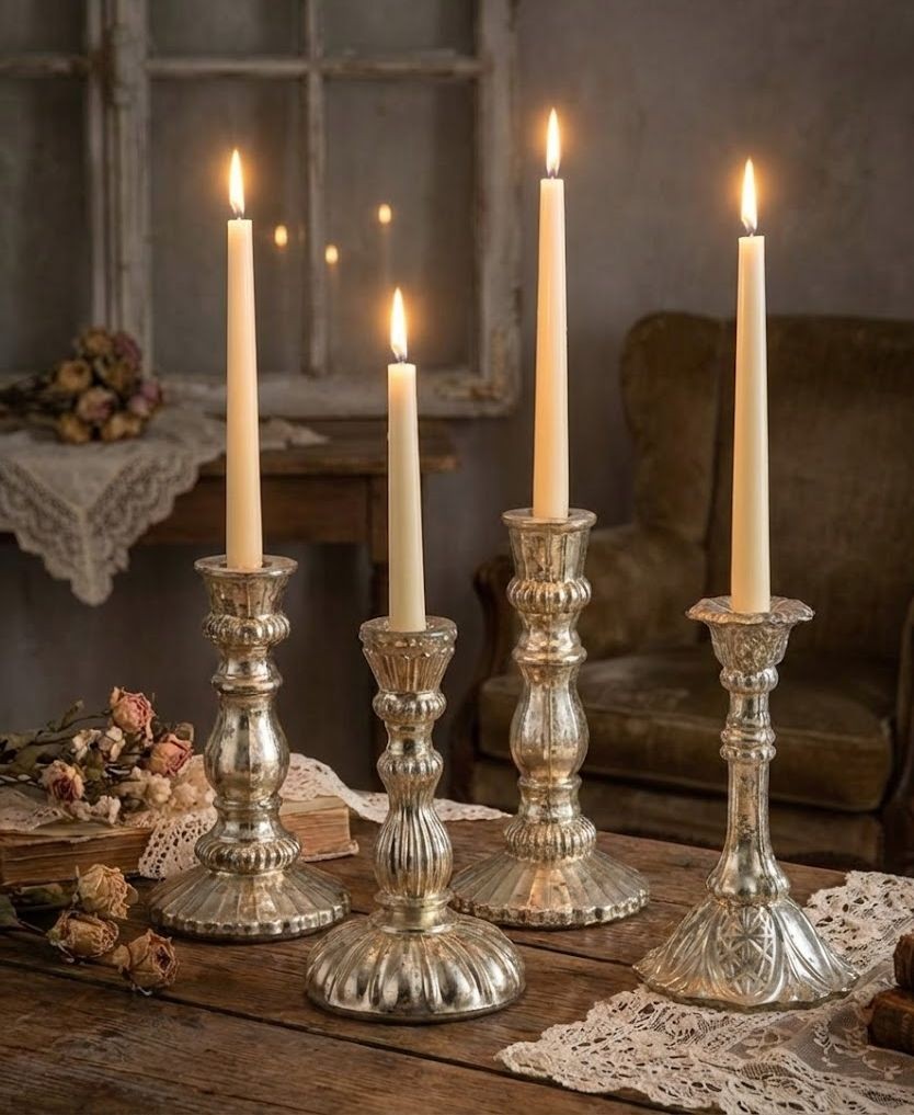Objevte kouzlo elegance se stříbrným antik skleněným svícnem Vintage Chantal, který je ideálním doplňkem pro každou příležitost.