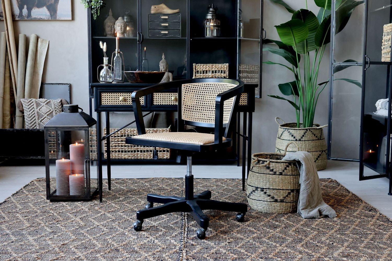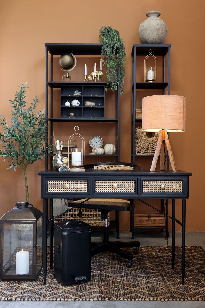 Má tři krásné zásuvky s francouzskými proutěnými čely a mosaznými knoflíky. Slaďte stůl s úžasnou francouzskou kancelářskou židlí od Chic Antique a udělejte z domácí kanceláře nádhernou součást vašeho domova.