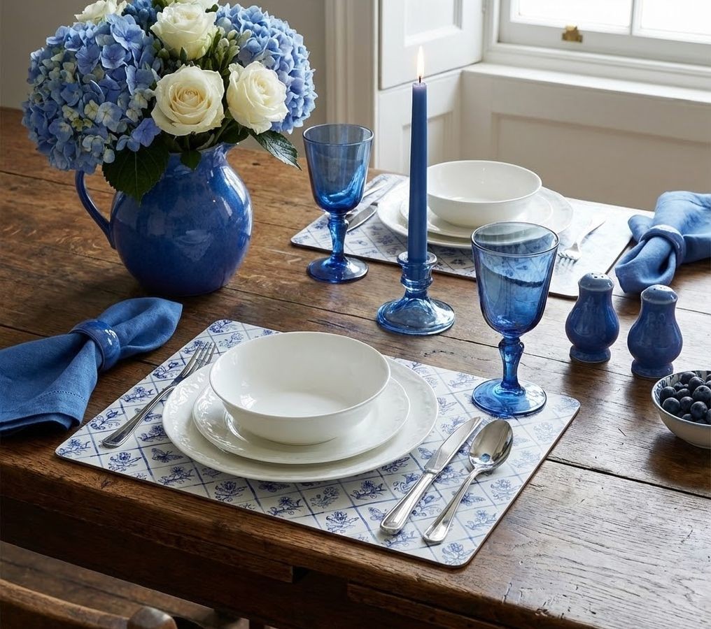 Vyrobená z kvalitního korku, tato prostírání kombinuje odolnost s estetickým designem. S rozměry 30x40 cm a tloušťkou 0,4 cm nabízejí ideální plochu pro obsluhu vašich oblíbených pokrmů, zatímco modré květy dodávají každému stolu osvěžující nádech jara.