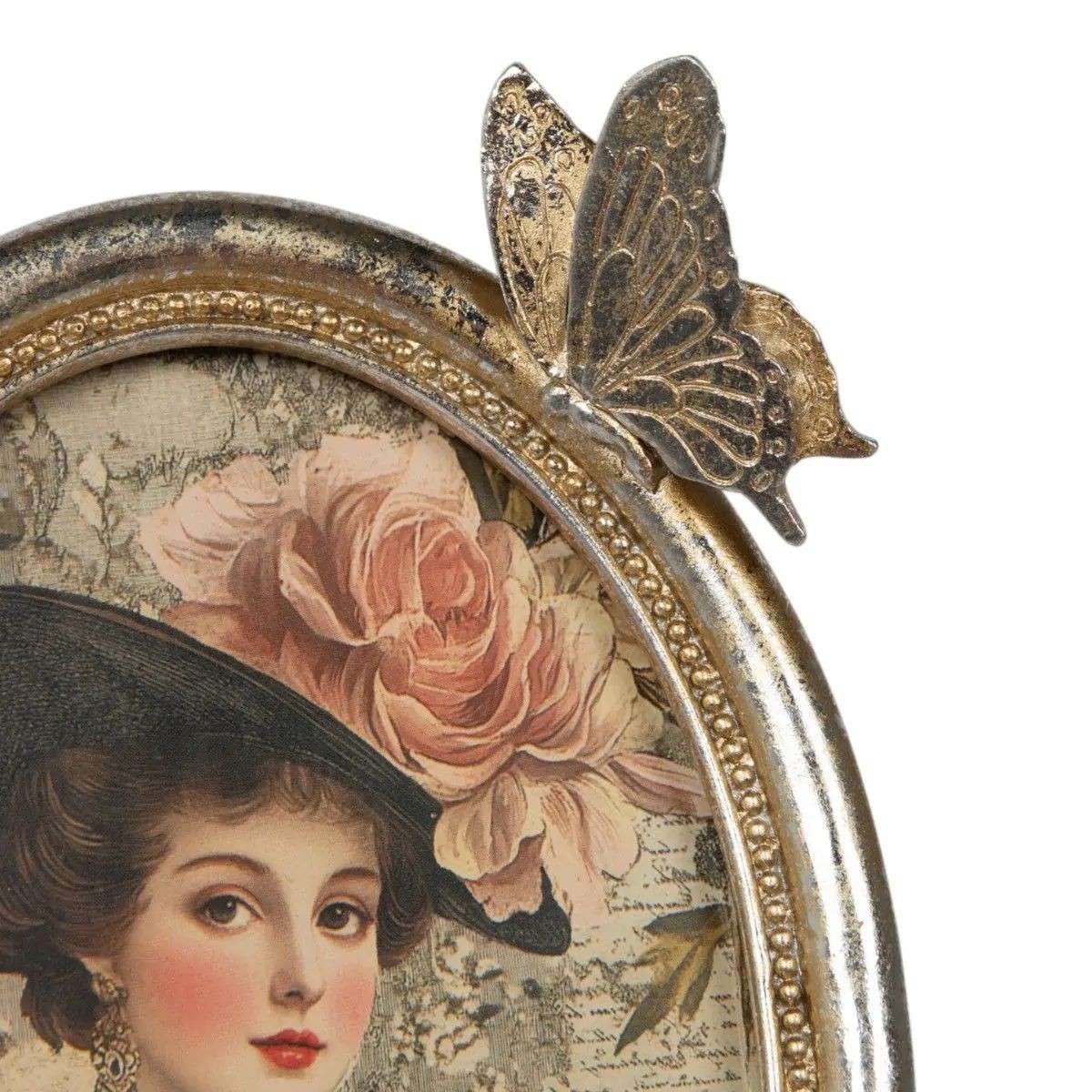 Dominantou rámečku jsou bohaté plastické motivy rozkvetlých růží ve spodní části a romantický detail motýla, který jako by právě usedl na jeho horní okraj. Rámeček je ideálním doplňkem do interiérů laděných do provence, shabby chic nebo klasického zámeckého stylu. Skvěle se bude vyjímat na komodě, nočním stolku, toaletce nebo krbové římse.