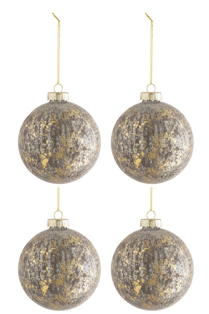 Obohaťte svou vánoční výzdobu s nádhernými skleněnými ozdobami v šedo zlaté barvě. Tyto vánoční ozdoby o průměru 10 cm jsou dokonalým doplňkem pro každodenní i sváteční atmosféru.