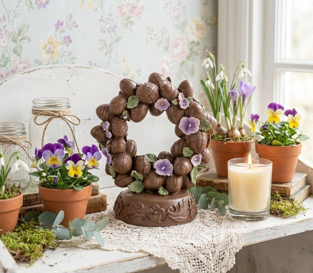 Neodolatelné pokušení pro vaše oči! Vneste do svého domova sladkou atmosféru Velikonoc a jara s touto unikátní dekorací, která vypadá, jako by ji právě odlili z té nejjemnější mléčné čokolády.