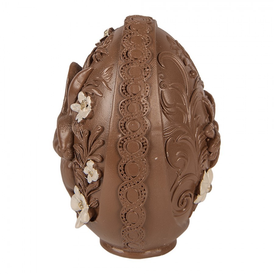 Vytvořte si dokonalou jarní atmosféru! Oboustranně zdobené vajíčko s králíčkem a bohatými florálními ornamenty ve věrné imitaci čokolády. Výška 13 cm.