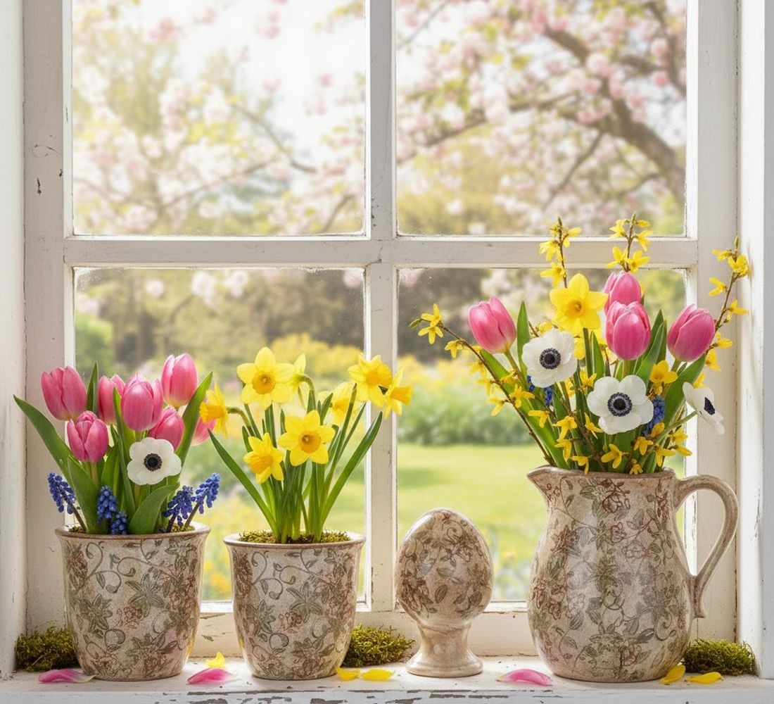 Kombinujte květináč s dekorativními vajíčky nebo elegantními džbány a udělejte si nezapomenutelnou atmosféru ve vašem interiéru.