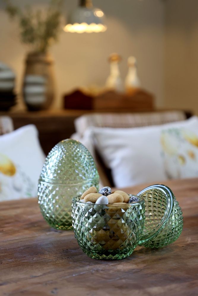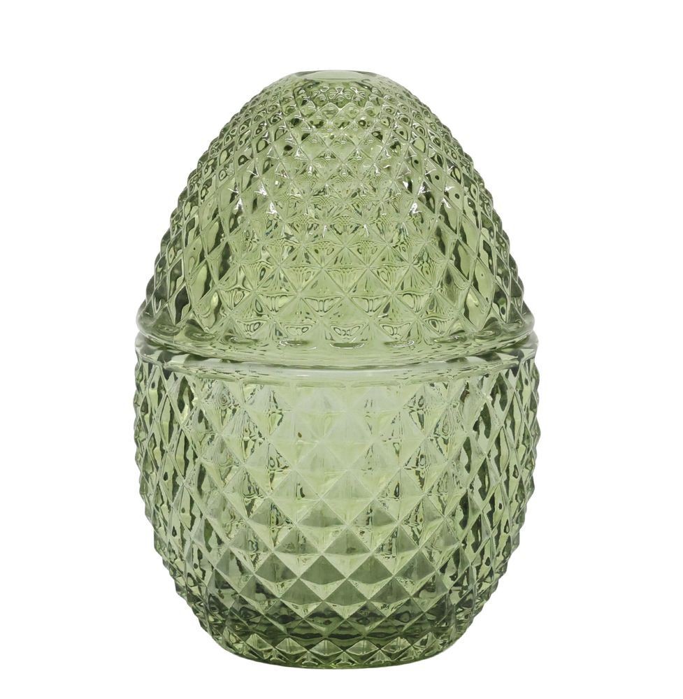 Objevte jedinečnou zelenou skleněnou dózu ve tvaru vajíčka Saint-Émilion o rozměrech Ø 8*12 cm, která okouzlí každý interiér svou elegancí a jemností.