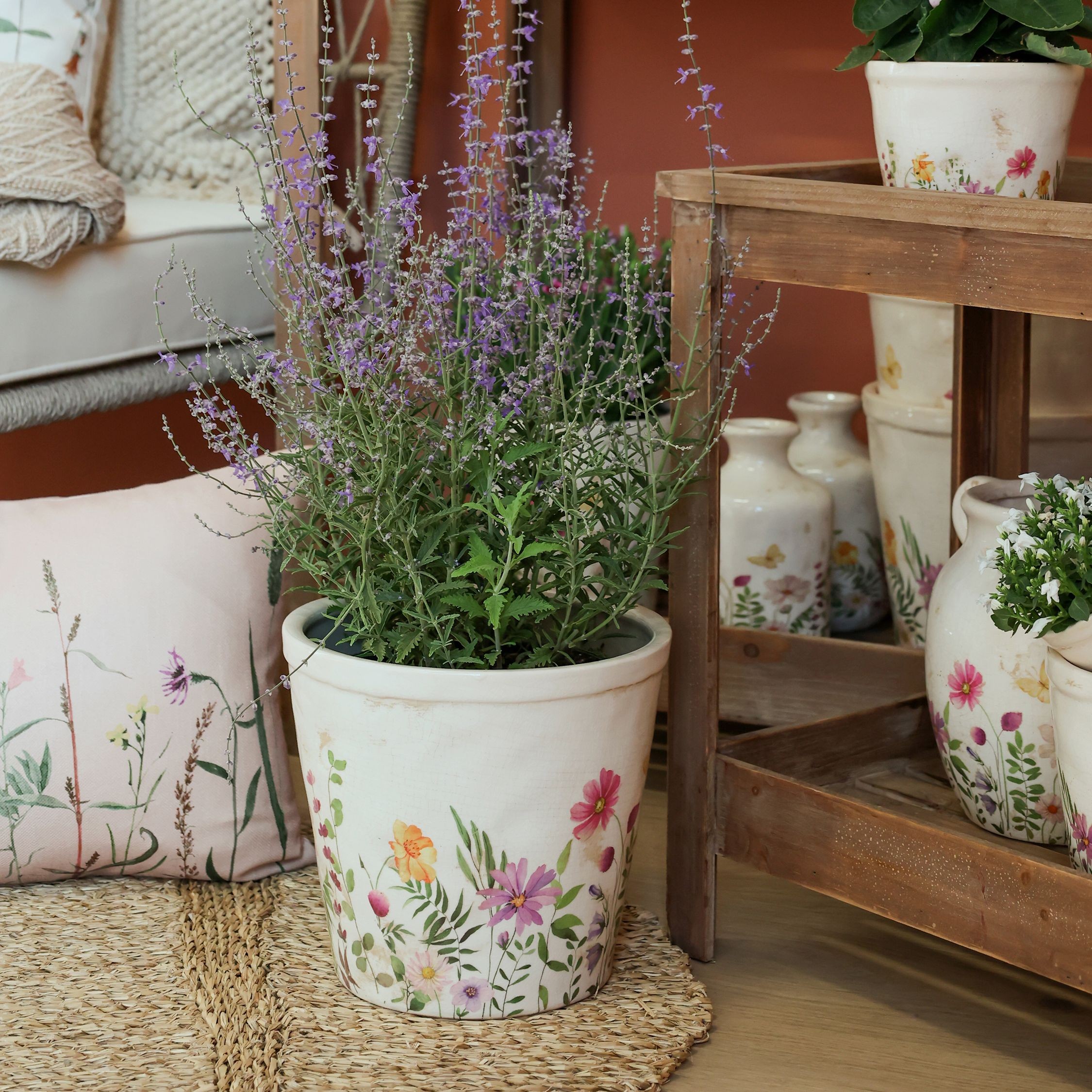 Květináč Avignon je součástí květované kolekce, kterou můžete snadno kombinovat s dalšími keramickými doplňky ve stejném designu.