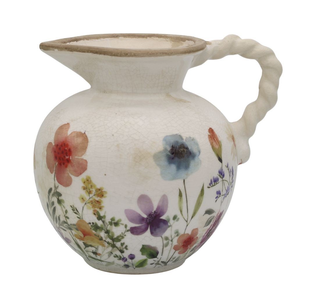 Přineste do svého domova kousek romantického kouzla s béžovým antikem keramickým džbánem s květy Fleurville.