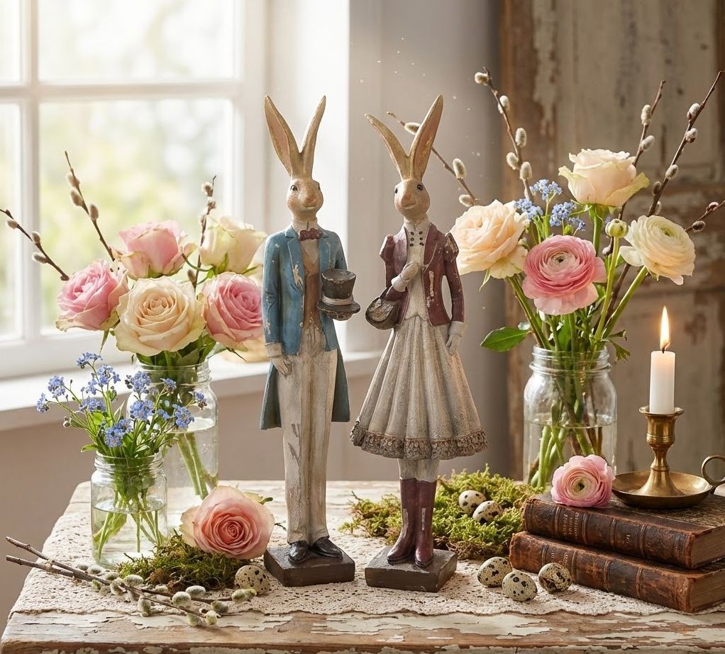 S výškou 32 cm se jedná o výrazný dekorativní prvek, který se bude skvěle vyjímat na krbové římse, v knihovně nebo jako součást jarní a velikonoční výzdoby na vašem stole. Tento kousek vnese do každého interiéru jedinečnou atmosféru a kouzlo starého světa.