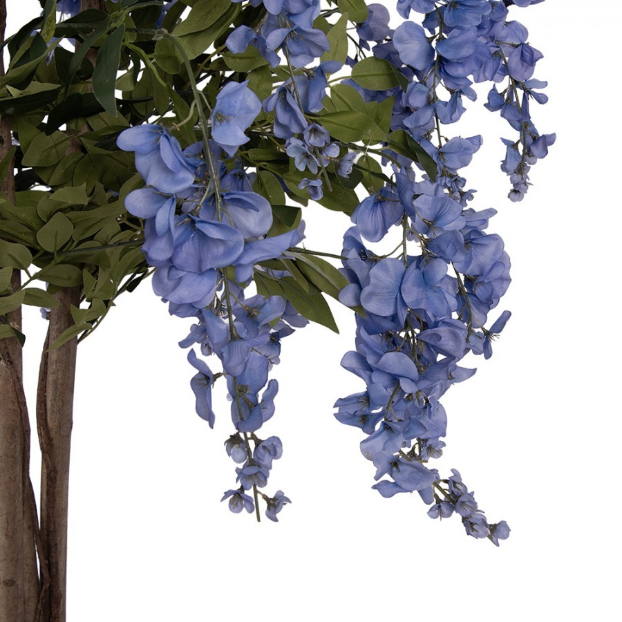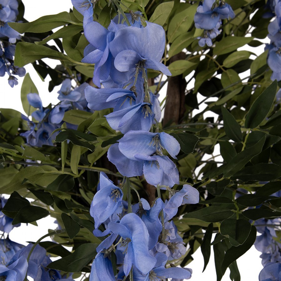 Realisticky strukturovaný kmen se přirozeně větví do bohaté koruny, která je obsypána detailně propracovanými listy a především dlouhými hrozny modro-fialových květů. Díky kompaktním rozměrům koruny (cca 40x40 cm) se skvěle hodí i do užších prostor, rohů místností nebo chodeb, kde okamžitě upoutá pozornost, aniž by překážel.