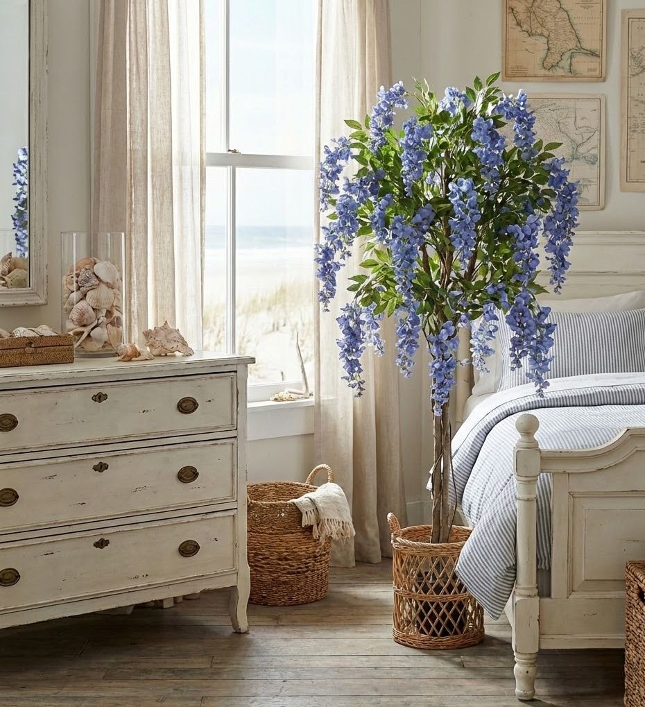 Proč zvolit tento produkt: Tato umělá Vistárie je řešením pro tmavé kouty, kde by živé rostliny neprosperovaly. Nabízí celoroční záplavu květů bez starostí a je vhodná i pro alergiky.