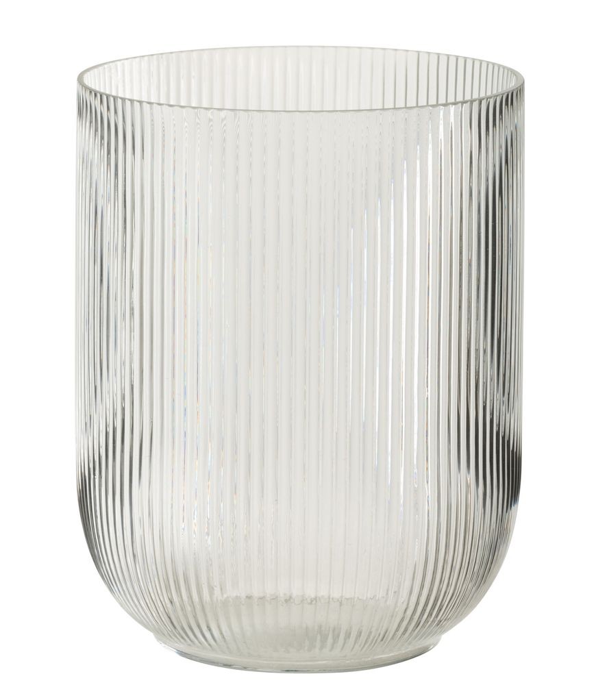 Vroubkovaný design (Ribbed Glass) Hlavním předností této vázy je její povrchová úprava. Jemné vertikální vroubkování (žebrování) po celém obvodu jí dodává zajímavou texturu a moderní vzhled. Tyto drážky navíc efektně pracují se světlem – ať už denním nebo umělým – a vytvářejí krásné odlesky, které oživí prostor na stole či komodě.
