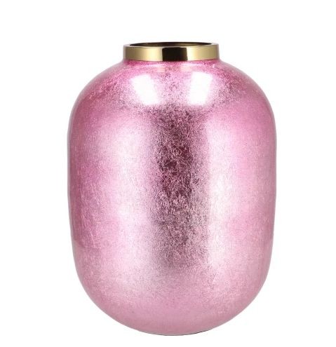 Designová kovová váza Jullie Jolly (36 cm) v oslnivé metalické růžové barvě. Unikátní strukturovaný povrch a luxusní zlatý lem u hrdla z ní činí dokonalý glamour doplněk. Robustní a stabilní dekorace pro moderní interiéry.