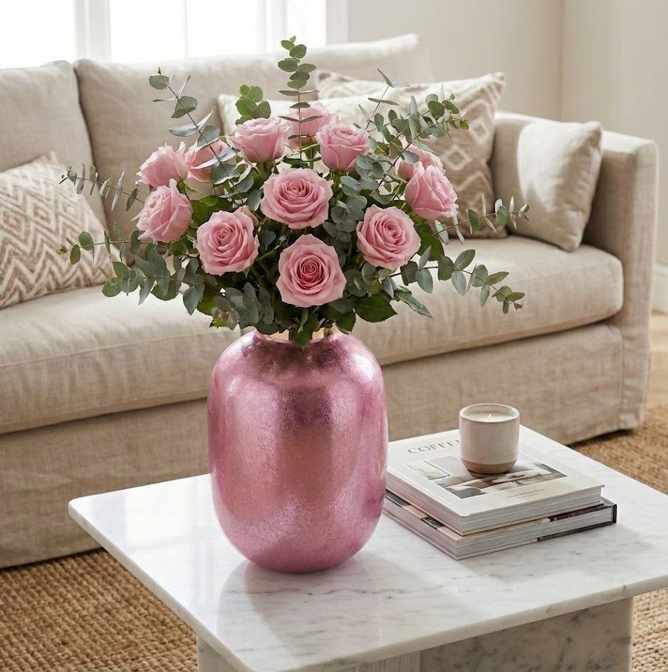 Hledáte doplněk, který okamžitě rozzáří místnost a dodá jí punc luxusu? Kovová váza Jullie Jolly v nádherném odstínu metalické růžové je přesně tím prvkem, který vašemu domovu chyběl.