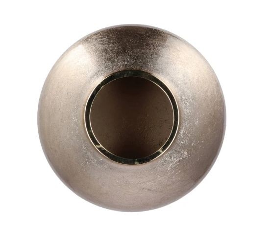 Tato váza vyniká svým specifickým strukturovaným povrchem, který připomíná jemně tepaný kov nebo aplikované plátkové zlato. Díky této úpravě váza nádherně odráží světlo do všech stran a vytváří v interiéru teplou a útulnou atmosféru. Design je zakončen hladkým, vysoce leštěným zlatým lemem u hrdla, který tvoří dokonalou tečku za celkovým luxusním vzhledem.