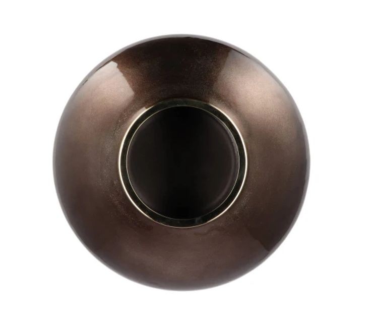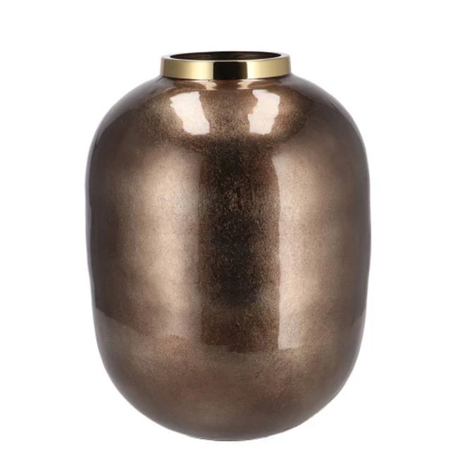 Povrch vázy zaujme svou sytou barvou připomínající skotský bronz nebo tmavý kaštan s jemným kovovým odleskem. Na rozdíl od světlých variant působí tento tmavý odstín uklidňujícím a uzemňujícím dojmem. Vrchol vázy zdobí kontrastní zlatý lem, který temný podklad krásně rozzáří a dodává celku punc exkluzivity.
