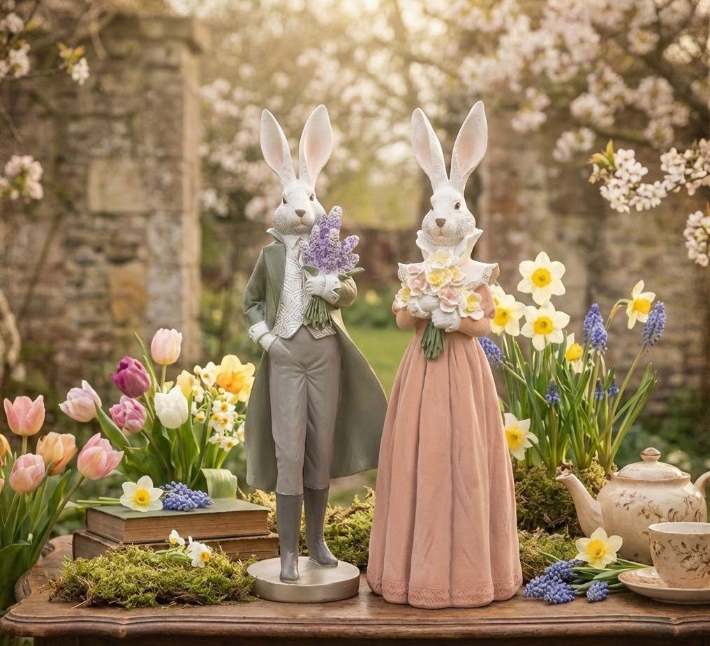 Přineste do svého domova kouzlo starých časů a romantickou jarní náladu s touto noblesní zaječí dámou ve vintage stylu. Tato majestátní dekorace o výšce 53 cm se okamžitě stane nepřehlédnutelným středobodem vaší velikonoční či celojarní výzdoby.