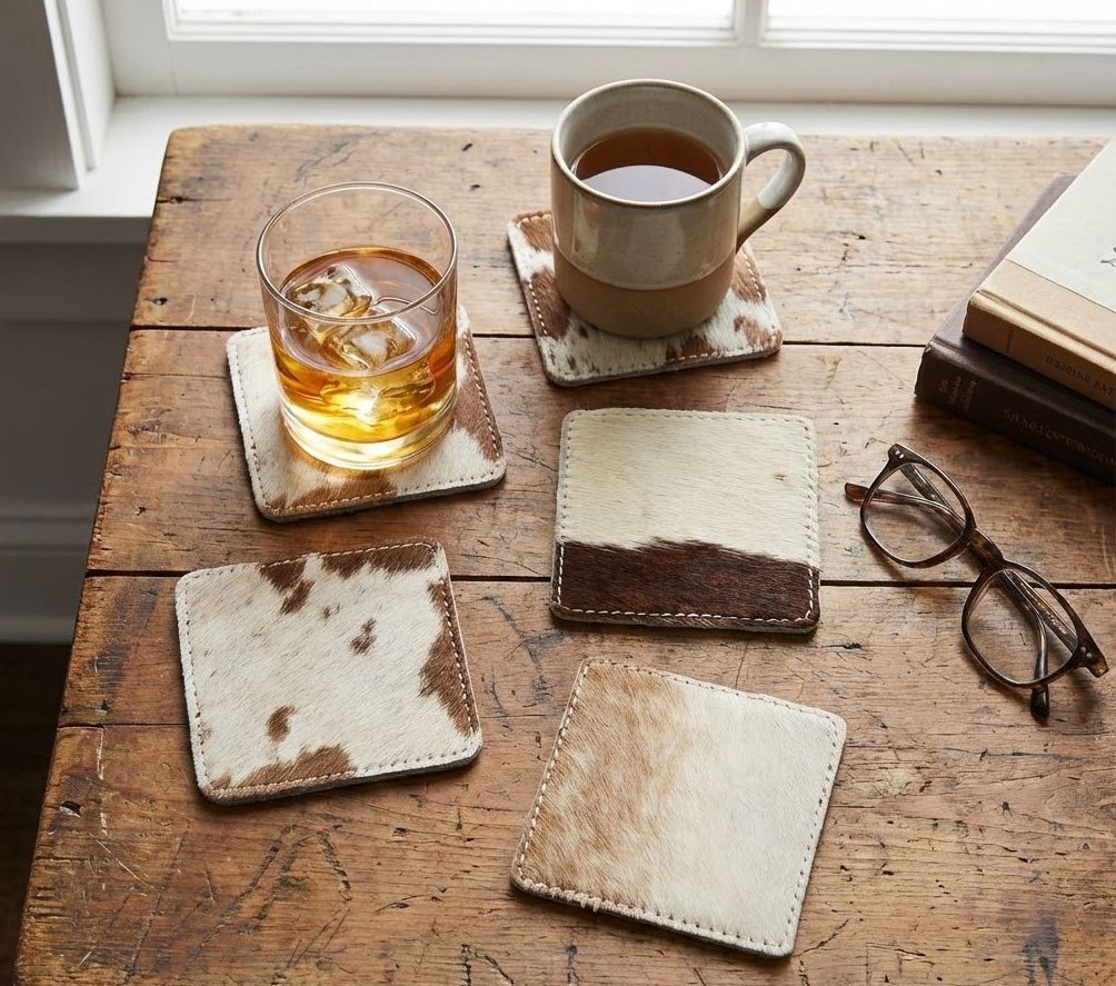 Čtvercový podtácek z pravé hovězí kůže s dekorativním prošíváním. Přírodní materiál se srstí zajišťuje vysokou odolnost a originální vzhled. Ideální pod sklenice, hrnky nebo jako stylová dekorace pod svíčku.