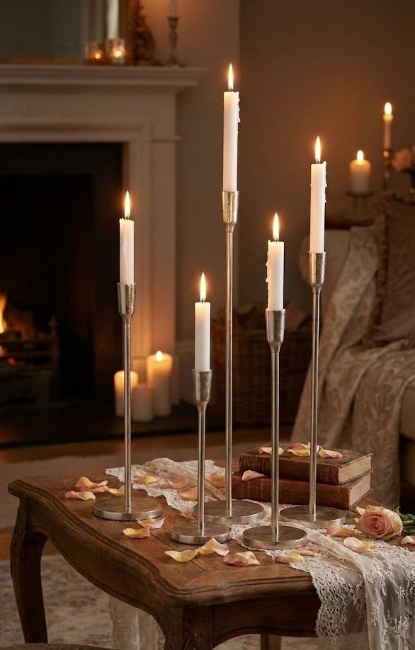 Pokud hledáte doplněk, který se stane dominantou místnosti, svícen Norry Silver je tou správnou volbou. Vyniká svou impozantní výškou 61 cm a velmi štíhlou, protaženou nohou, která působí lehce a vzdušně. Povrchová úprava "raw silver" (surové stříbro) mu dodává jemně matný, texturovaný vzhled, který není tak prvoplánově lesklý jako chrom, a proto působí sofistikovaněji.