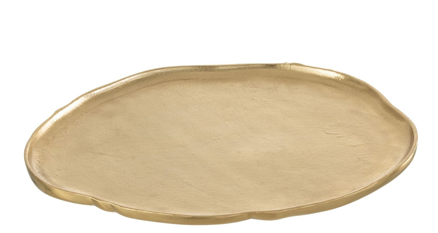 Dodejte svému interiéru nádech nedbalé elegance s tímto zlatým kovovým podnosem v raw stylu. Jeho organický tvar s nepravidelnými okraji a matný zlatý povrch z něj dělají unikátní designový doplněk, který rozbije nudu přísných geometrických linií. Skvěle poslouží jako podklad pro dekorace nebo stylový servírovací tác.