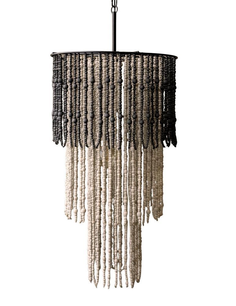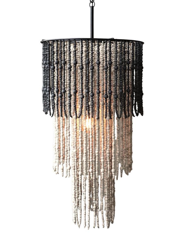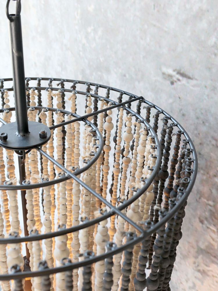 Design a atmosféra Unikátní vzhled je tvořen dvojbarevným kontrastem: horní část tvoří korálky v sytě černé barvě, které plynule přecházejí do spodních vrstev v přírodním světlém odstínu dřeva. Tento ombre efekt dodává lustru hloubku a moderní šmrnc. Po rozsvícení prochází světlo skrze prameny korálků a vytváří na stěnách nádhernou hru stínů a útulnou atmosféru, která je ideální pro relaxaci.