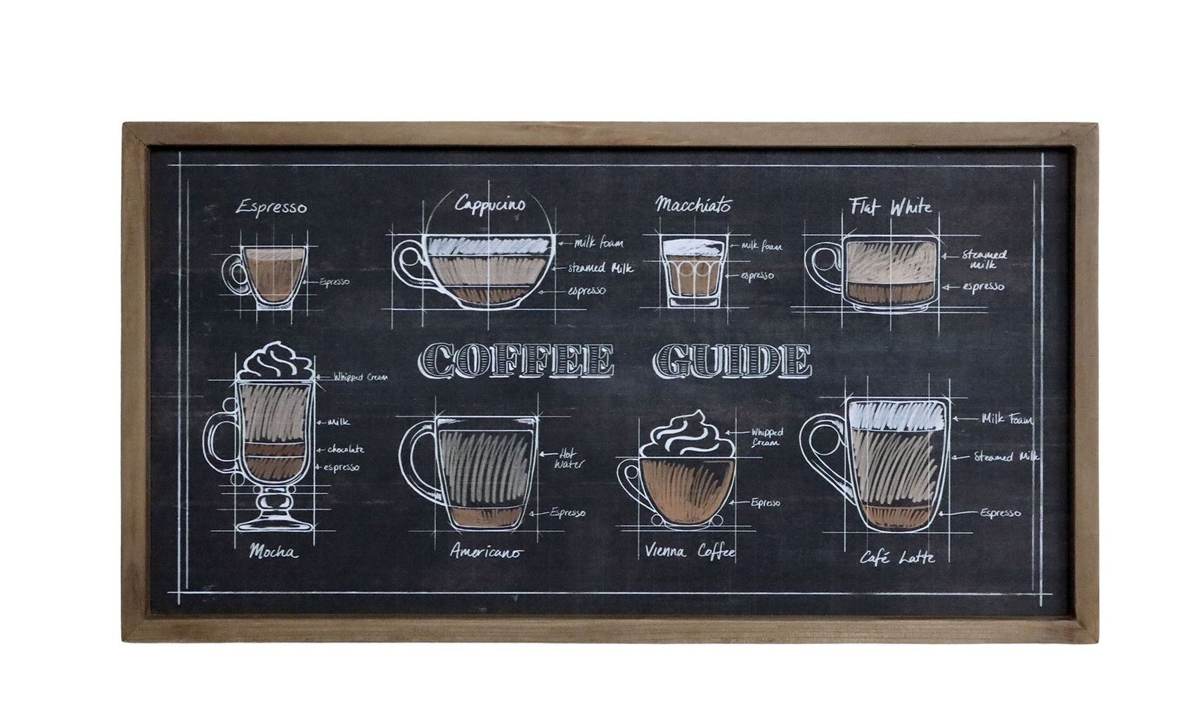 Tento stylový obraz je nezbytností pro každého milovníka kávy a domácího baristu. Nejenže skvěle vypadá, ale poslouží i jako praktický tahák při přípravě vašich oblíbených kávových specialit. Jeho design perfektně zapadne do interiérů v industriálním, vintage nebo moderním rustikálním stylu.