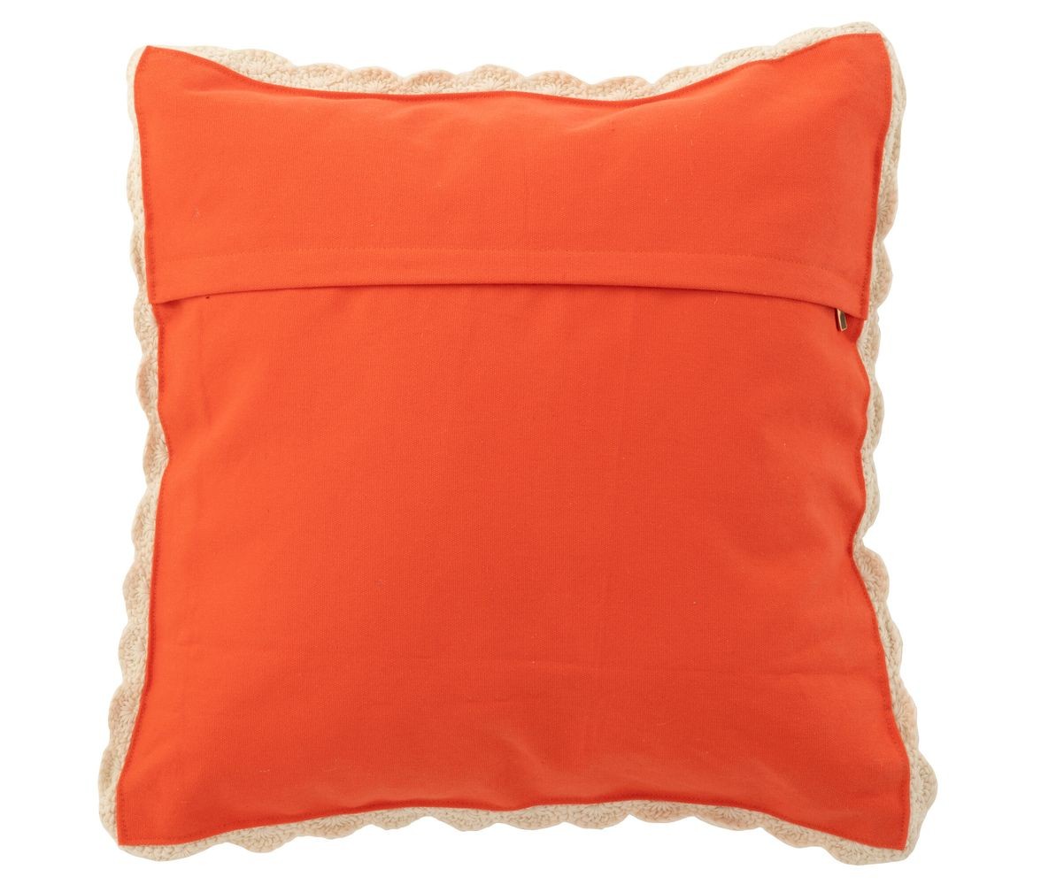 Myslíme i na funkčnost. Zadní strana povlaku je vyrobena z pevné, hladké látky v sytě oranžovém odstínu, díky čemuž polštář skvěle drží tvar. Pro snadné sejmutí a praní je na zadní straně všitý nenápadný, skrytý zip, který nijak nenarušuje celkový vzhled.