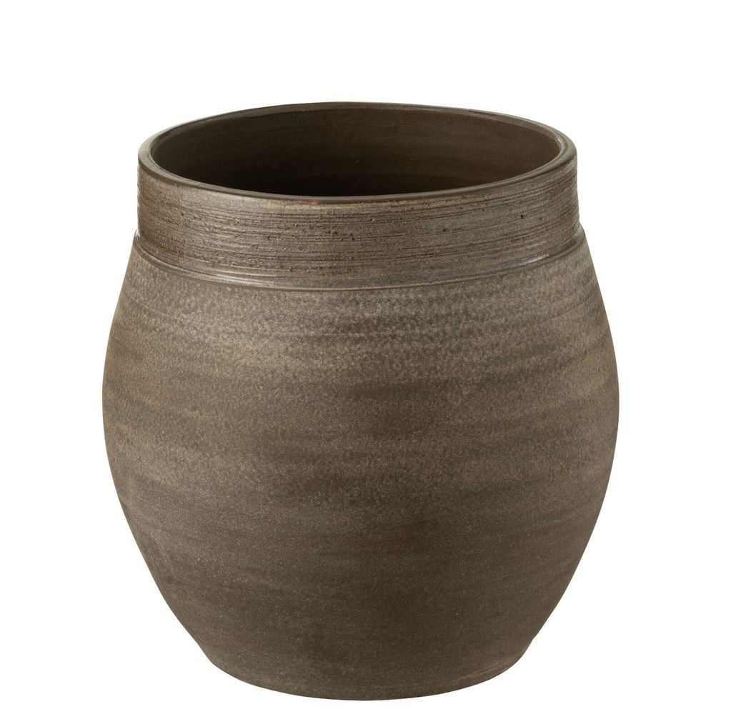Vytvořte si doma útulnou oázu s keramickým obalem na květináč Gio Refuge. Tento kousek vyniká svým autentickým, ručně působícím zpracováním a specifickou antik povrchovou úpravou. Tělo obalu je zdobeno jemnou horizontální texturou v prolínajících se hnědých a šedohnědých odstínech. Horní okraj je zakončen tmavší, mírně lesklou glazurou, která tvoří elegantní kontrast k matnému základu.