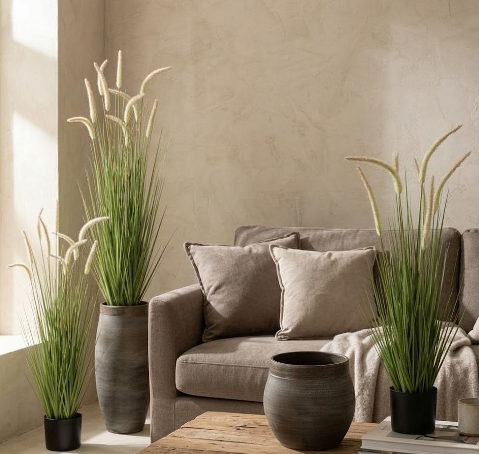 Milujete zeleň v interiéru, ale chybí vám čas na péči o živé rostliny nebo doma nemáte dostatek denního světla? Tato dekorativní okrasná tráva je dokonalým řešením. S úctyhodnou výškou 120 cm funguje jako výrazný vertikální prvek, který opticky prodlouží a provzdušní každý prostor.
