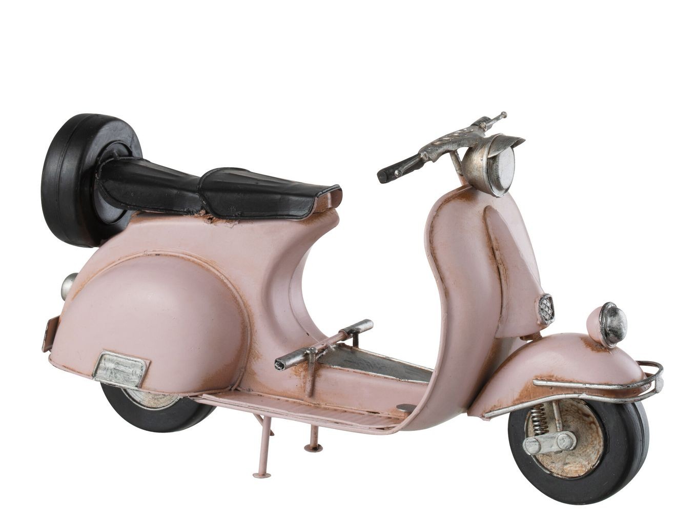 Vraťte se v čase a dodejte svému domovu kapku nostalgie s tímto okouzlujícím kovovým modelem retro skútru. Jeho jemná starorůžová barva v kombinaci s výraznou patinou a rezavými detaily z něj dělá nepřehlédnutelný vintage kousek, který potěší každého milovníka klasického designu.