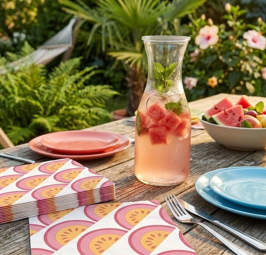 Všestranné využití: Skvělá volba pro letní grilování, oslavy u bazénu, pikniky v parku nebo jen pro oživení víkendového oběda na terase.