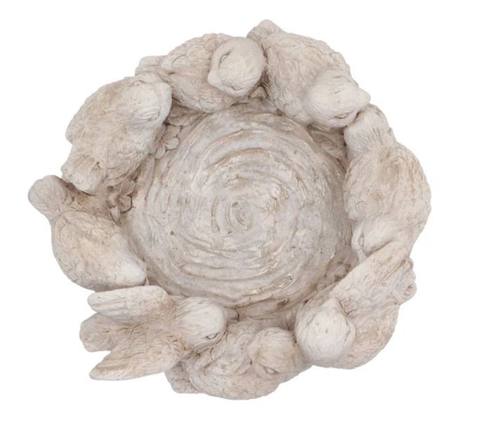 Oživte svou zahradu nebo obývací pokoj touto dekorativní mísou, kterou po celém obvodu střeží věnec detailně vymodelovaných ptáčků. Tato dekorace v sobě spojuje robustnost betonu s jemností přírodního motivu, což z ní činí ideální kousek pro milovníky vintage, Provence a Shabby Chic stylu.
