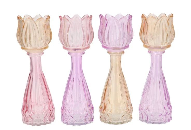 Objevte kouzlo elegance se sadou 4ks pastelovým mixem skleněného svícnu/vázy tulipán Love Tulip. S průměrem 7 cm a výškou 18 cm je tento stylový kousek dokonalým doplňkem pro každou místnost ve vašem domově.